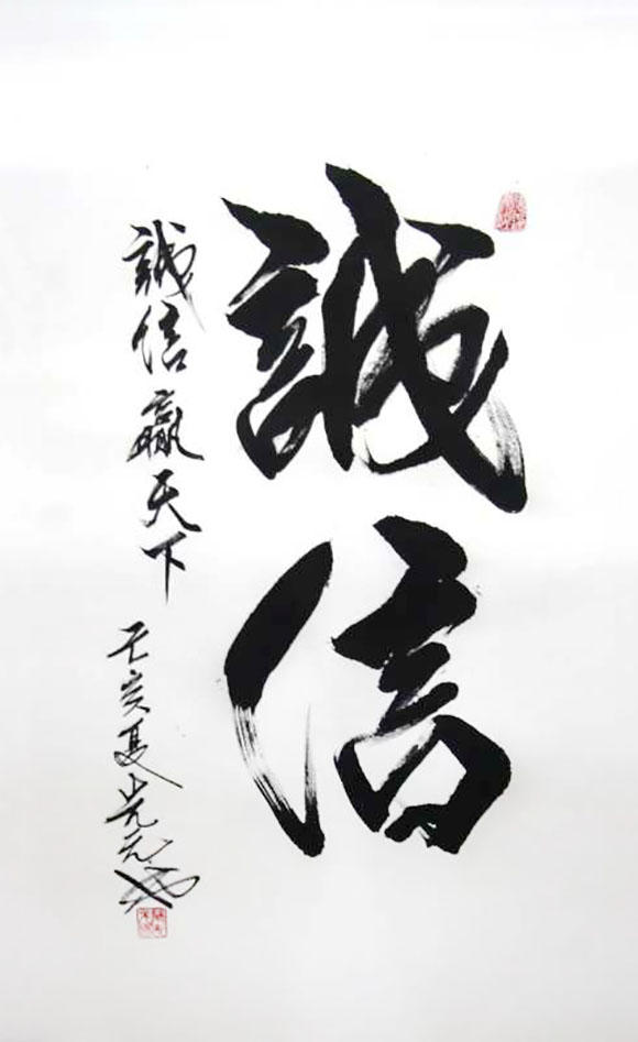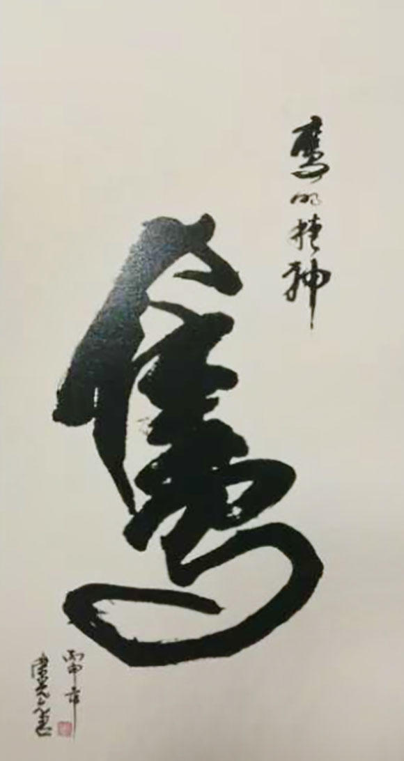 荣烜老师书道名家也,书道者,深得书法源流真谛也,书法者,成字之功夫也,即字的象、形、意,也就是形体、神采、意境、功力、气势、跳越、自然、俊逸、风格、章法为一体,凡通此十境者,必不愧书道名家之谓。